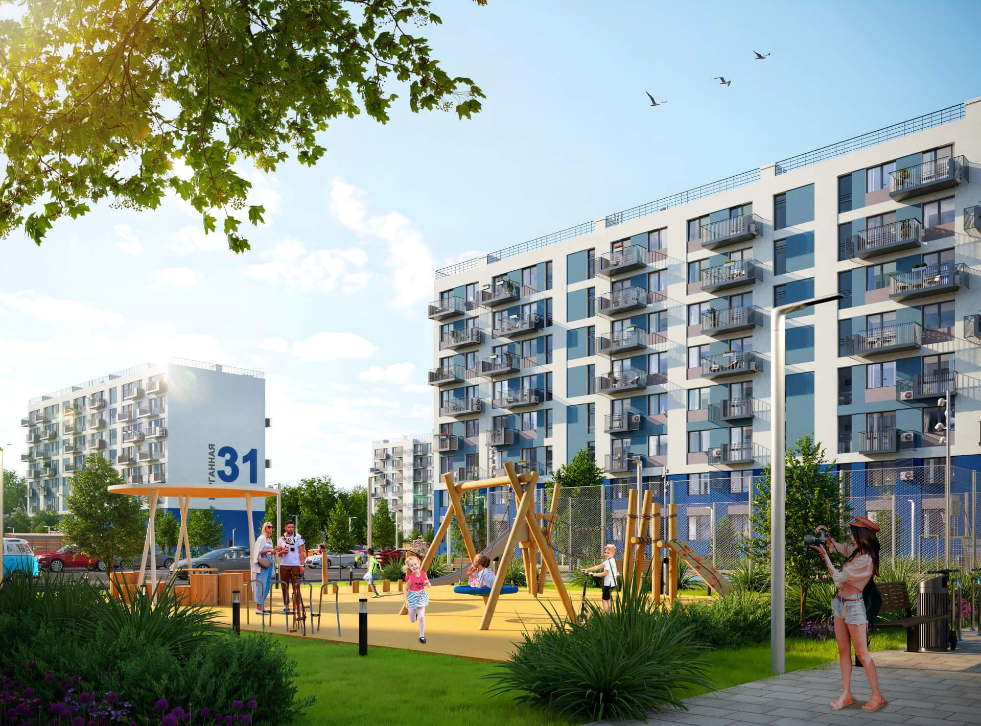 Дворовые территории ЖК «Республика» спроектированы таким образом, чтобы стать местом отдыха и общения. Ландшафтный дизайн включает зеленые насаждения, уютные аллеи и цветники. Детские площадки оборудованы безопасными покрытиями, а для взрослых предусмотрены зоны воркаута и спортивные площадки.